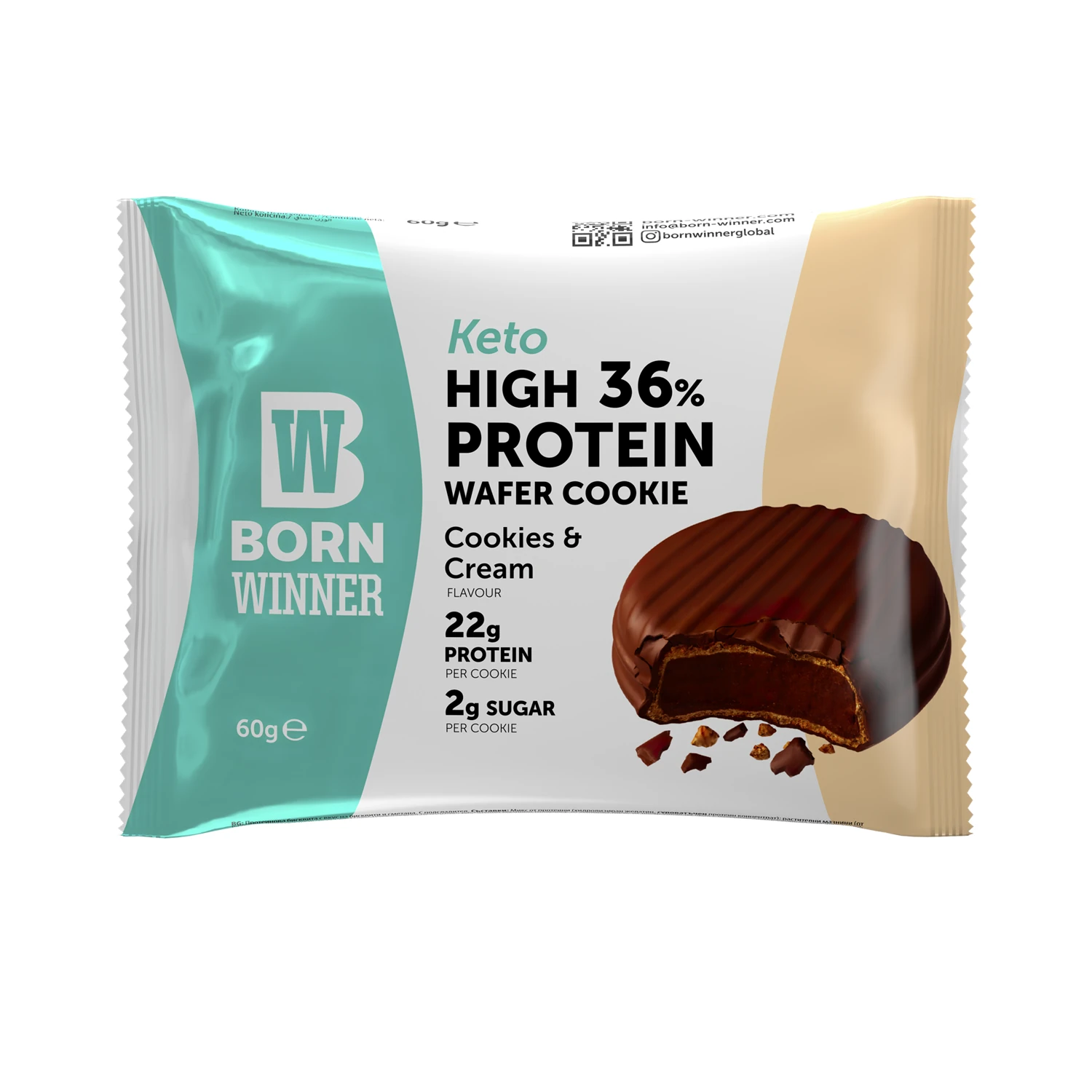 بورن وينر كيتو كوكيز ويفر عالي البروتين (كوكيز بالكريمة) 60 جم