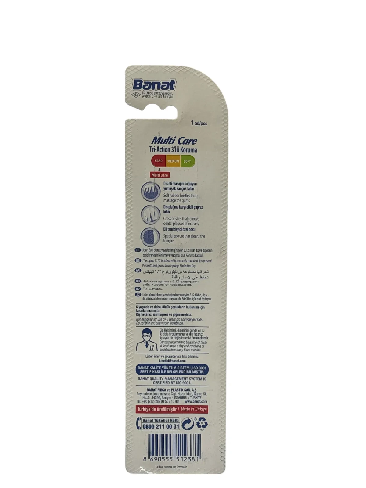 Banat Multi Care Toothbrush Hard, firm bristles, strong cleaning