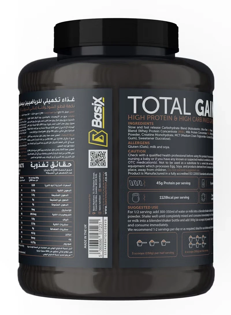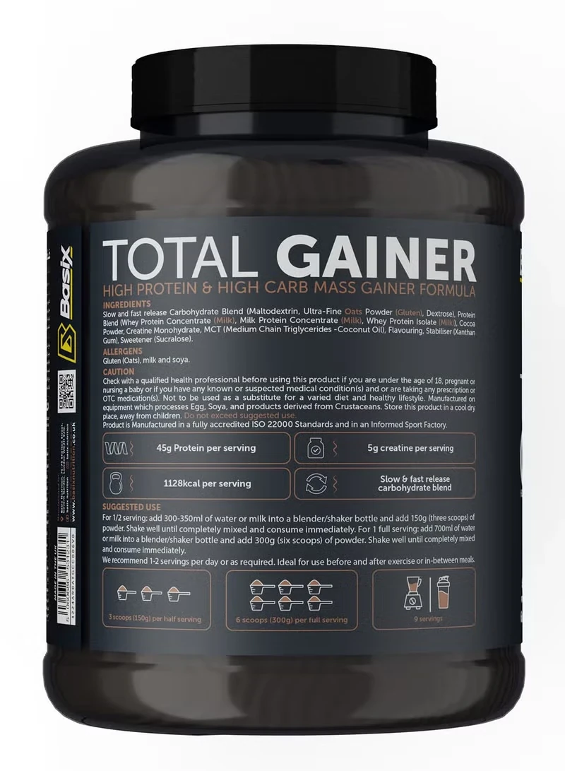 Basix Gain Total Gainer Chocolate Chunk, calorie-dense, recovery-friendly, smooth-textured, 6lb
