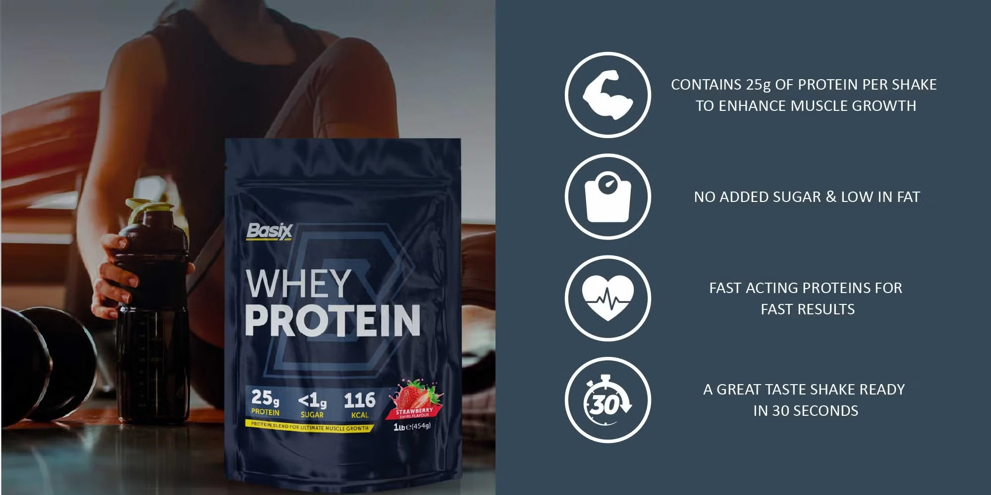 Basix Muscle Whey Protein Powder, Strawberry Swirl, smooth mixability, fruity taste, daily supplement, 1 Lb