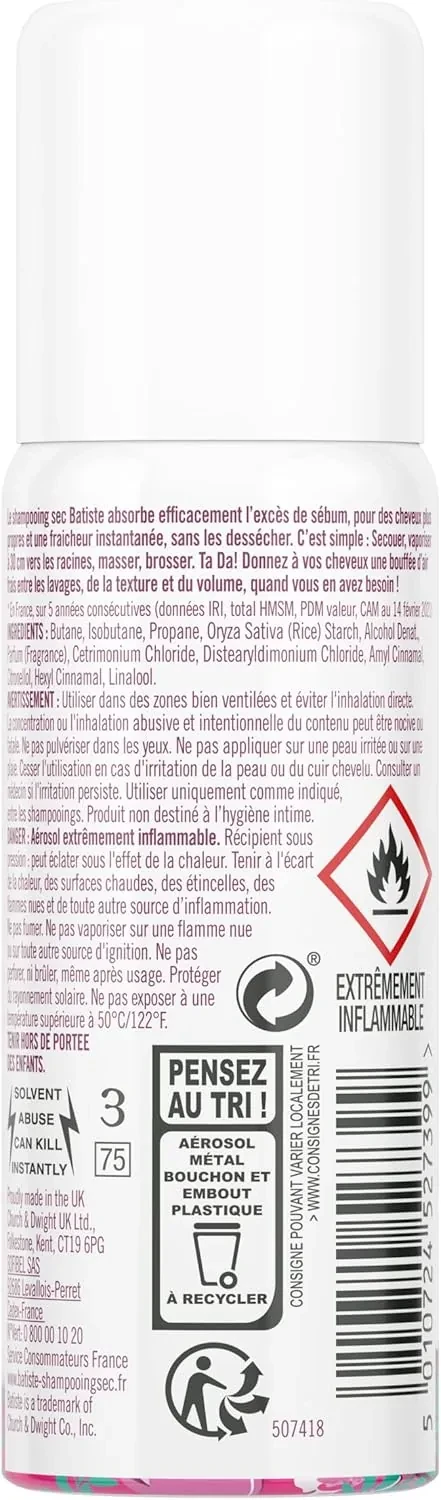 Refresh on the go with Batiste Dry Shampoo Blush. This compact essential absorbs excess oil, reviving your hair while leaving a delicate floral fragrance. Achieve fresh, full-bodied hair in seconds, keeping your style light, clean, and effortlessly refreshed wherever you are.