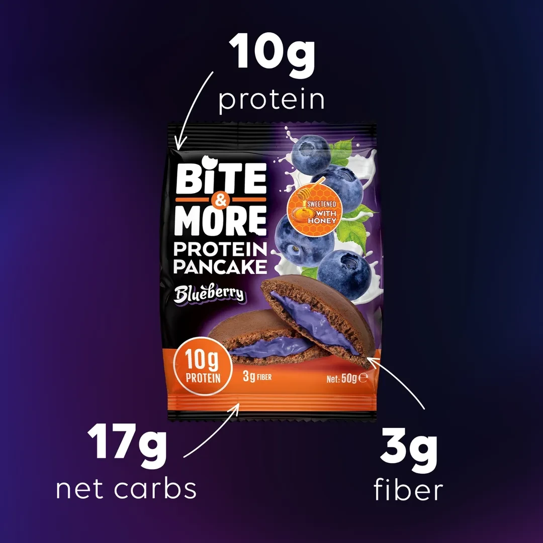Bite & More Protein Pancake, Blueberry, soft-baked, flavored, convenient, 50g