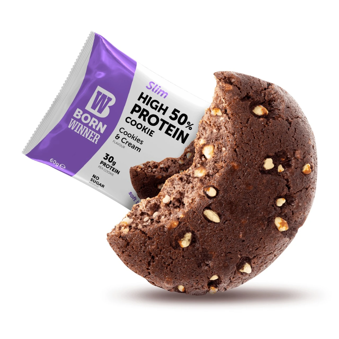 Born Winner Slim Protein Cookie, Cookies & Cream, crunchy texture, indulgent taste, 60g
