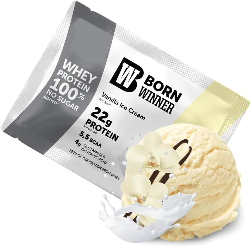 Born Winner Whey Protein Powder, Vanilla Ice Cream, smooth mixing, classic sweetness, 30g