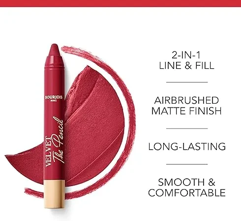 Make brown your new favorite shade with Bourjois Velvet The Pencil Lipstick 08 Less is Brown. This ultra-pigmented, velvety matte lipstick glides smoothly onto the lips, providing a warm brown tone that enhances any look. The easy-to-use pencil format ensures precise application, while the creamy formula keeps lips feeling soft and comfortable.