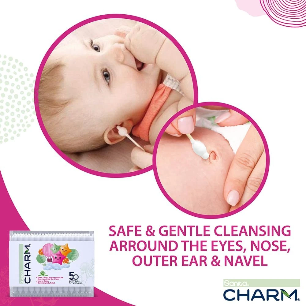 Keep your baby’s delicate ears and skin clean with Charm Cotton Buds Round, crafted with soft cotton tips for gentle care.