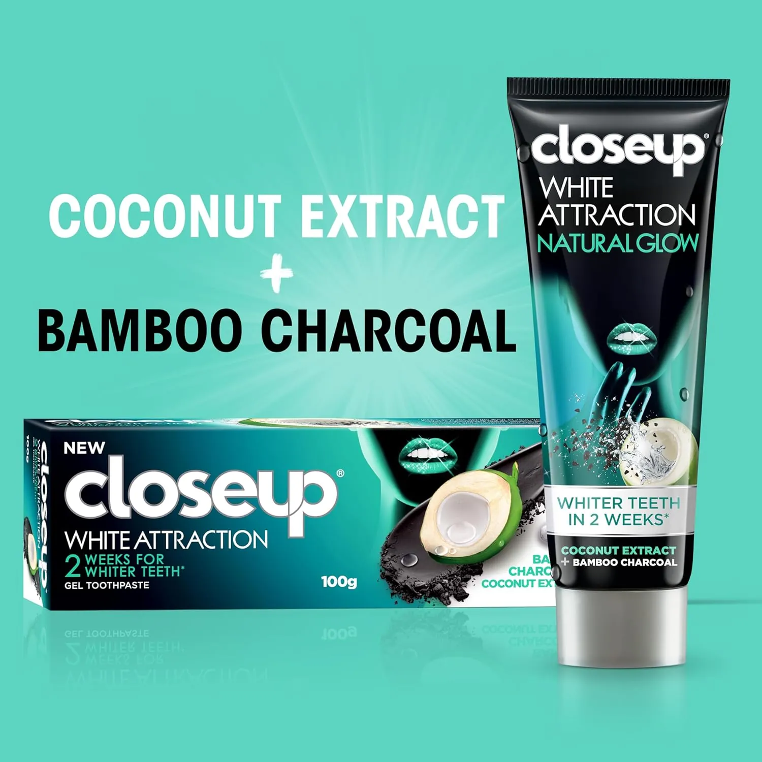 Close Up White Attraction Natural Glow Toothpaste (Coconut & Bamboo Charcoal), natural whitening, fresh feel, 75ml