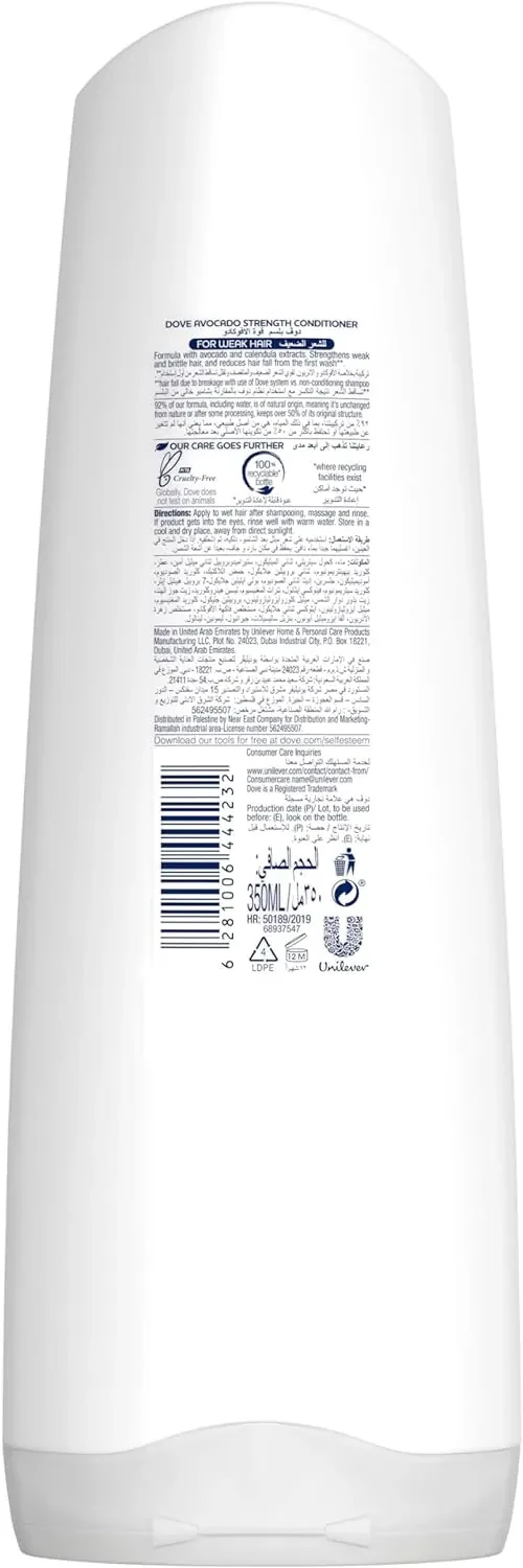 Dove Strengthening Ritual Avocado Conditioner, revitalizing care, creamy texture, 350ml