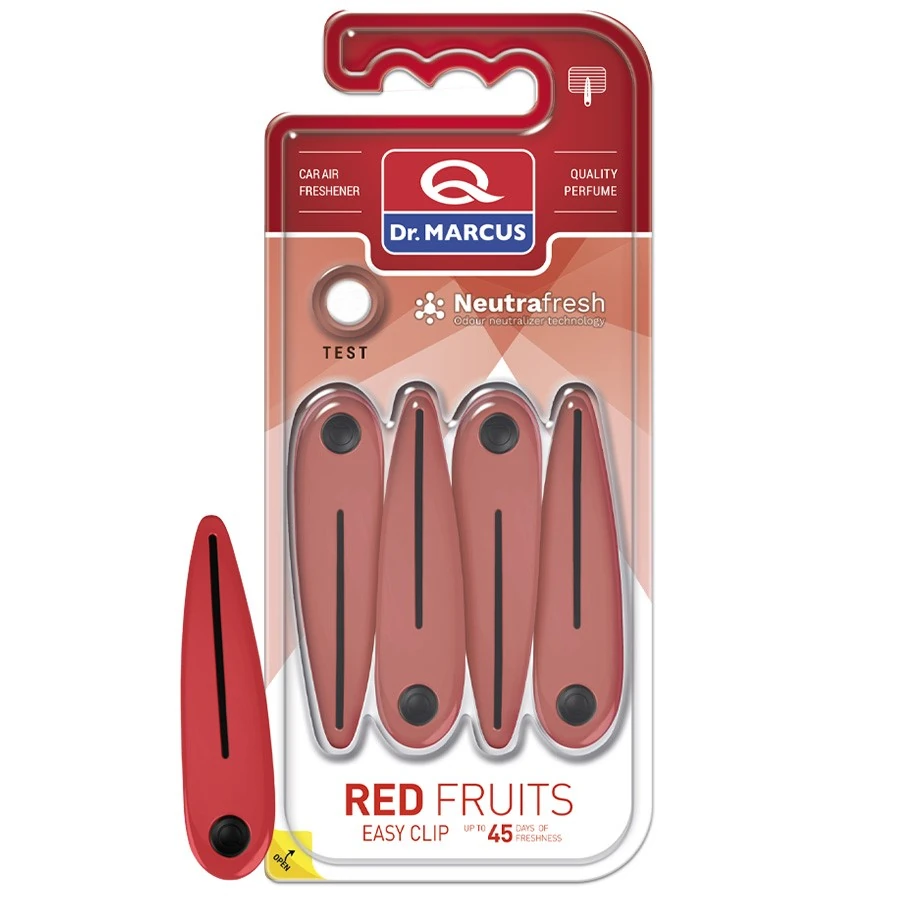 sweet and refreshing red fruit air freshener. Ideal for use in cars or small spaces, it eliminates unpleasant odors and creates a long-lasting, fresh and relaxing atmosphere.