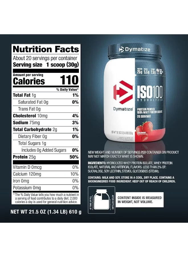 Dymatize ISO 100 Whey Protein Isolate (Strawberry) 610g 20 Servings