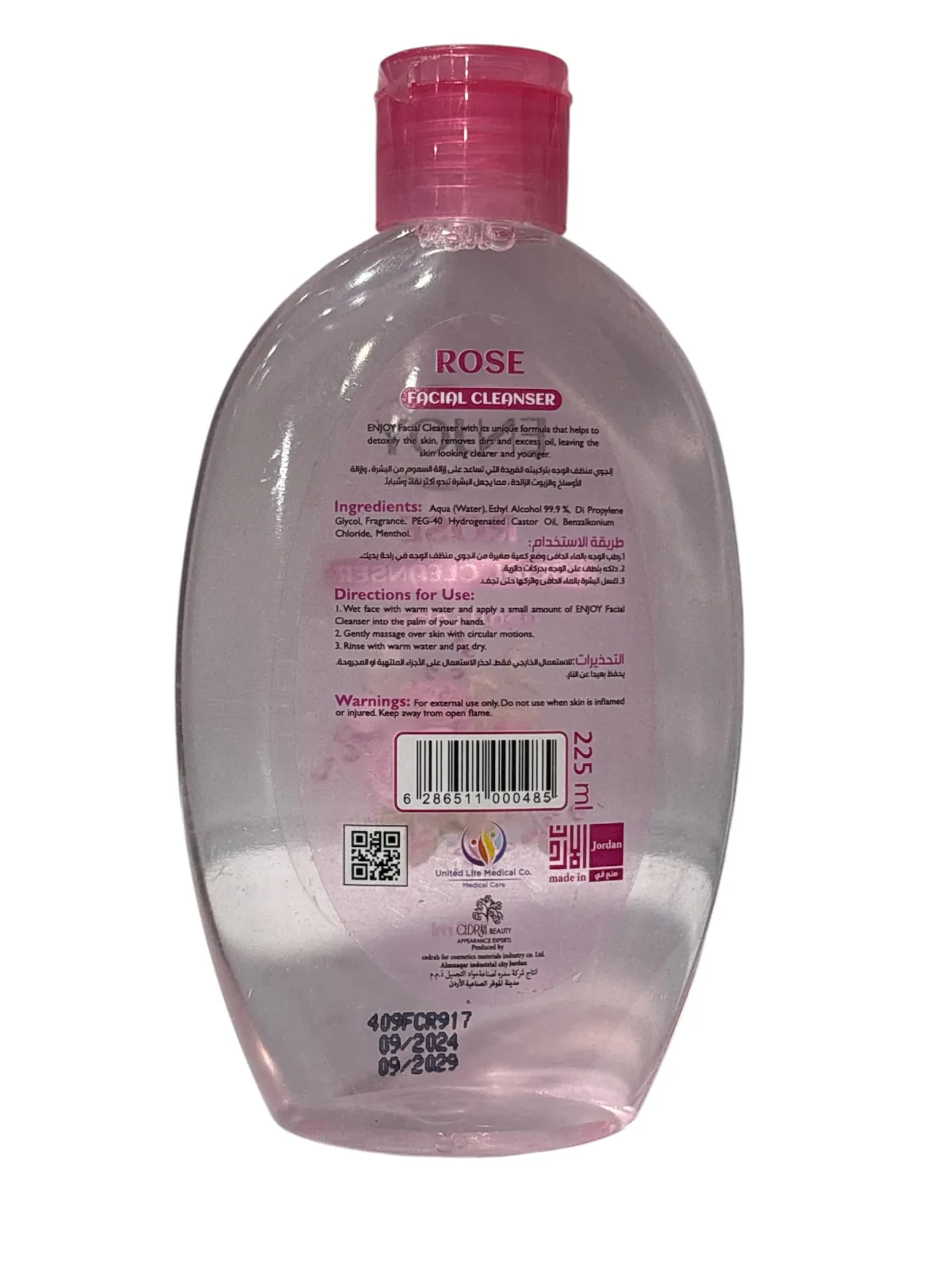 Enjoy Rose Facial Cleanser gently cleanses while maintaining skin softness and hydration. Infused with rose extracts, it removes impurities without stripping away moisture, leaving your skin feeling smooth and refreshed. Perfect for daily use, it enhances natural radiance and keeps your complexion looking fresh and nourished.