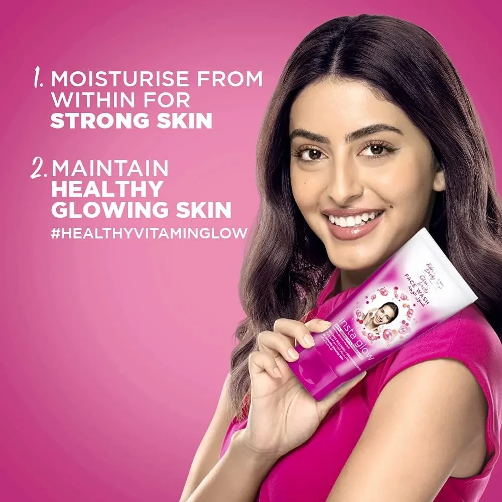 Tired of dull skin? Fair & Lovely Insta Glow Multivitamins Face Wash removes dirt, oil, and daily buildup, enhancing your skin’s natural glow. Enriched with multivitamins, this gentle cleanser leaves your face refreshed, brightened, and visibly healthier after every use.
