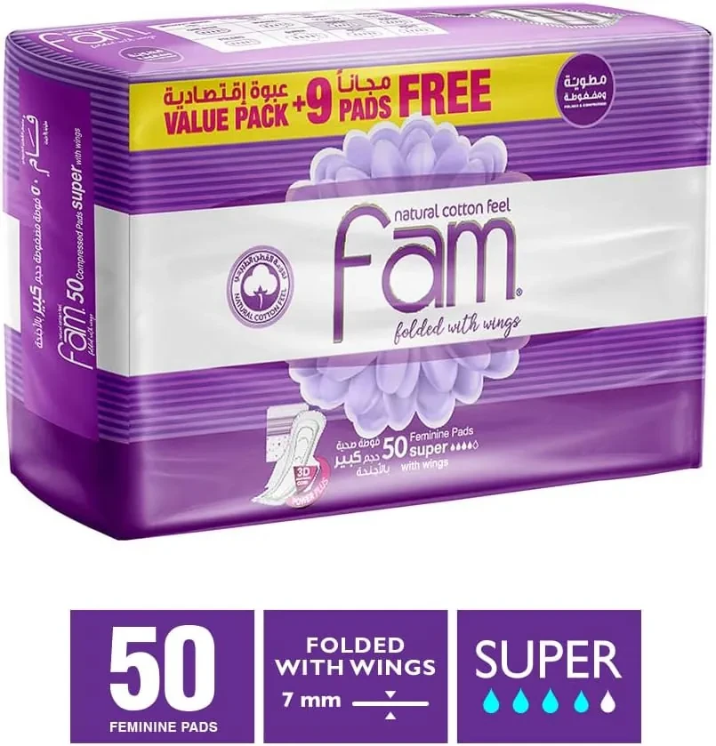 Fam Maxi Wings Sanitary Pads, secure, comfortable, 50 Pieces