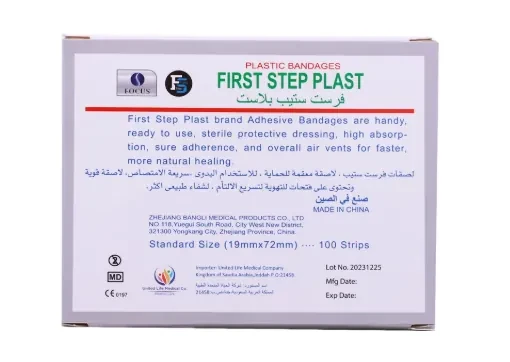 First Step Bandages provide reliable coverage for minor cuts and scrapes. These standard-shaped bandages protect the wound from dirt and bacteria while the breathable material promotes comfort during healing. Suitable for home use, travel, or workplace first aid kits, ensuring quick protection when needed.