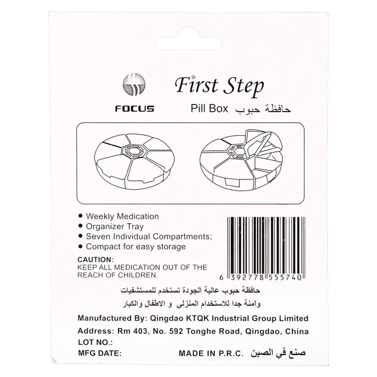 Organize your daily medication with ease using First Step Pill Organizer Round Weekly. This practical solution keeps your pills sorted for each day of the week, helping you stay on track with your health routine. First Step Pill Organizer Round Weekly is compact and easy to use, perfect for travel or home use.