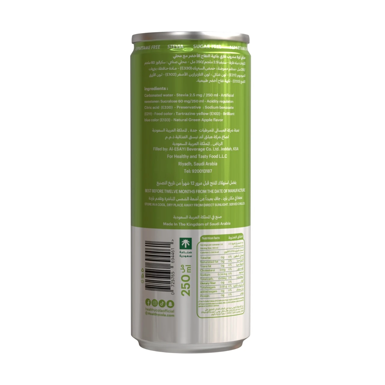 Healthy & Tasty Healthy Zero Sugar Cola (Green Apple) 250ml