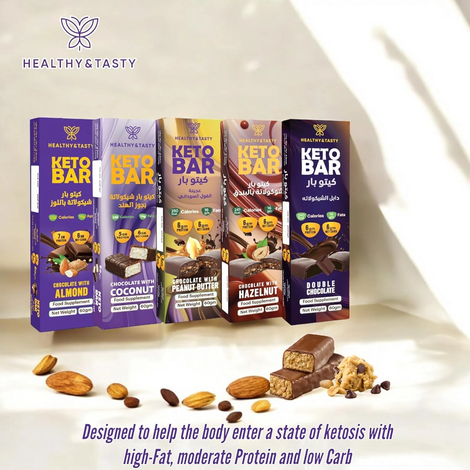 Healthy & Tasty Keto Bar, Double Chocolate, low carb, rich taste, snack ready, 60g