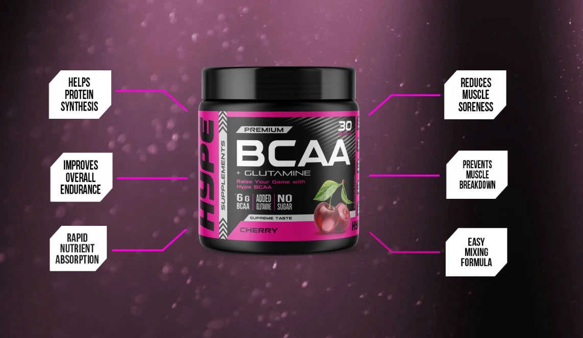 Hype Premium BCAA + Glutamine Powder (Cherry) 300g 30 Servings
