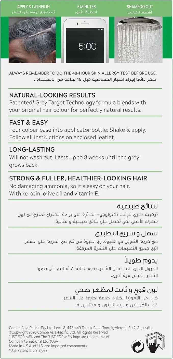 Revitalize your darkest brown hair with a natural-looking finish. Just For Men Darkest Brown Hair Color Shampoo H-50 gradually blends away grays while nourishing your hair. With a shampoo-in application, it’s quick and convenient for a refreshed look without an artificial appearance. Achieve healthy, shiny hair with rich color that lasts.