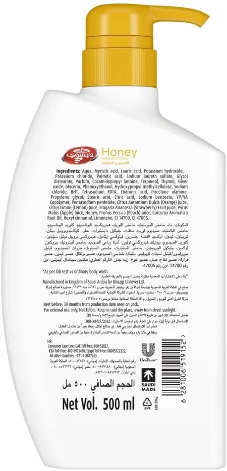 Lifebuoy Honey and Turmeric Body Wash, soothing effect, nourishing touch, 500ml