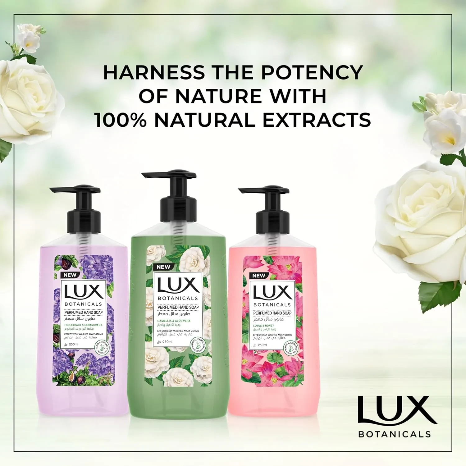 If you seek a refreshing cleanse with botanical care, Lux Skin Detox Camellia & Aloe Vera Hand Wash purifies your hands with the soothing essence of camellia and aloe vera. The gentle formula removes dirt and impurities while leaving your skin feeling soft, hydrated, and delicately scented with a revitalizing fragrance.