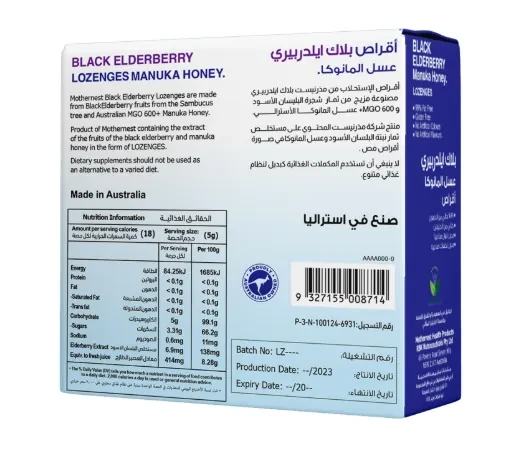 Mothernest Elderberry Manuka Honey Lozenges 60g