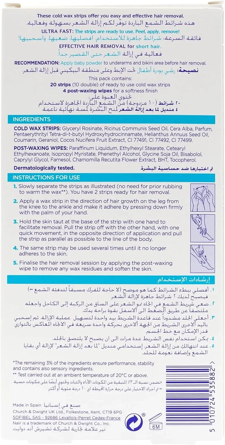 Nair Body Wax Strips Coconut, nourishing, quick-apply, 20 Pieces