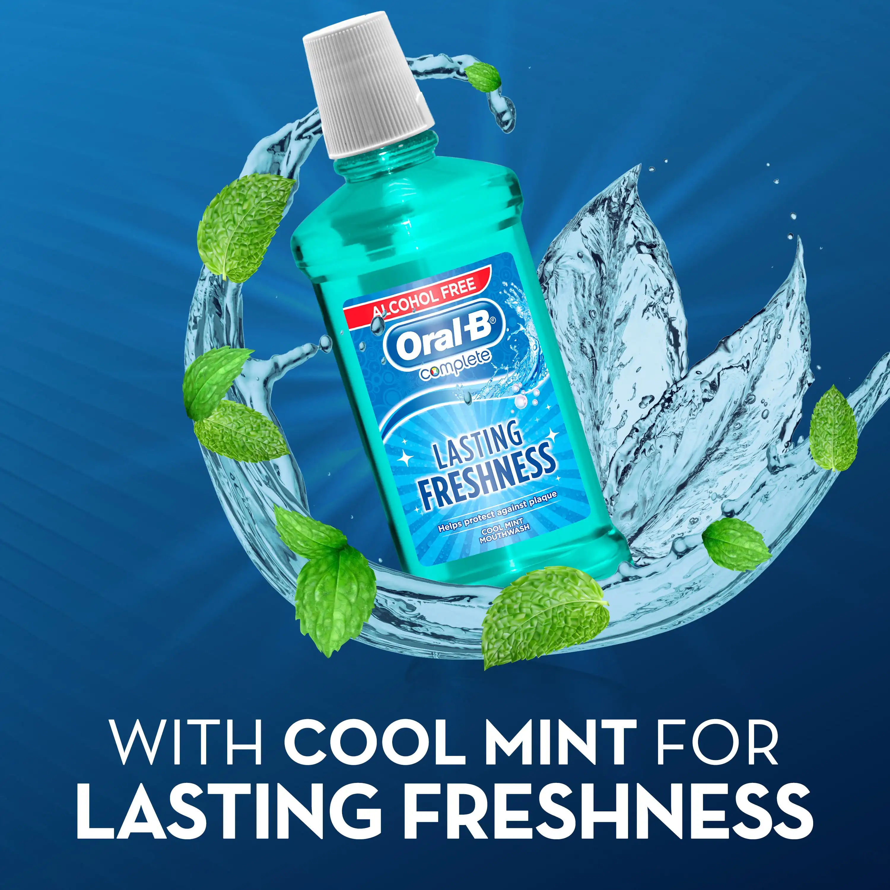Because lasting freshness is key to confidence, Oral-B Complete Lasting Fresh Cool Mint Mouthwash fights plaque and bacteria while delivering an invigorating minty finish. Perfect for keeping breath fresh all day.