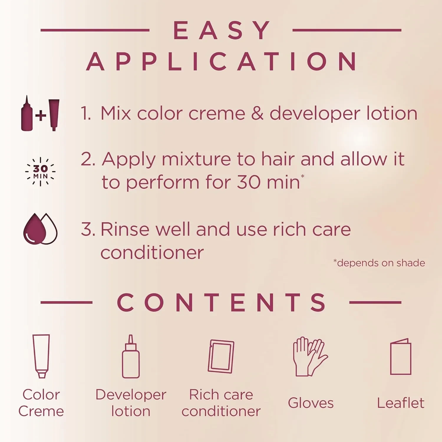Apply to dry hair, leave for the recommended time, then rinse thoroughly.
