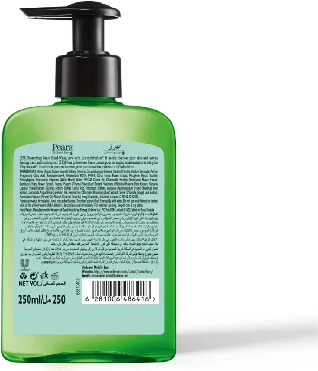 Pears Oil Clear & Glow Hand Wash, glow-enhancing, oil-reducing, gentle, 250ml