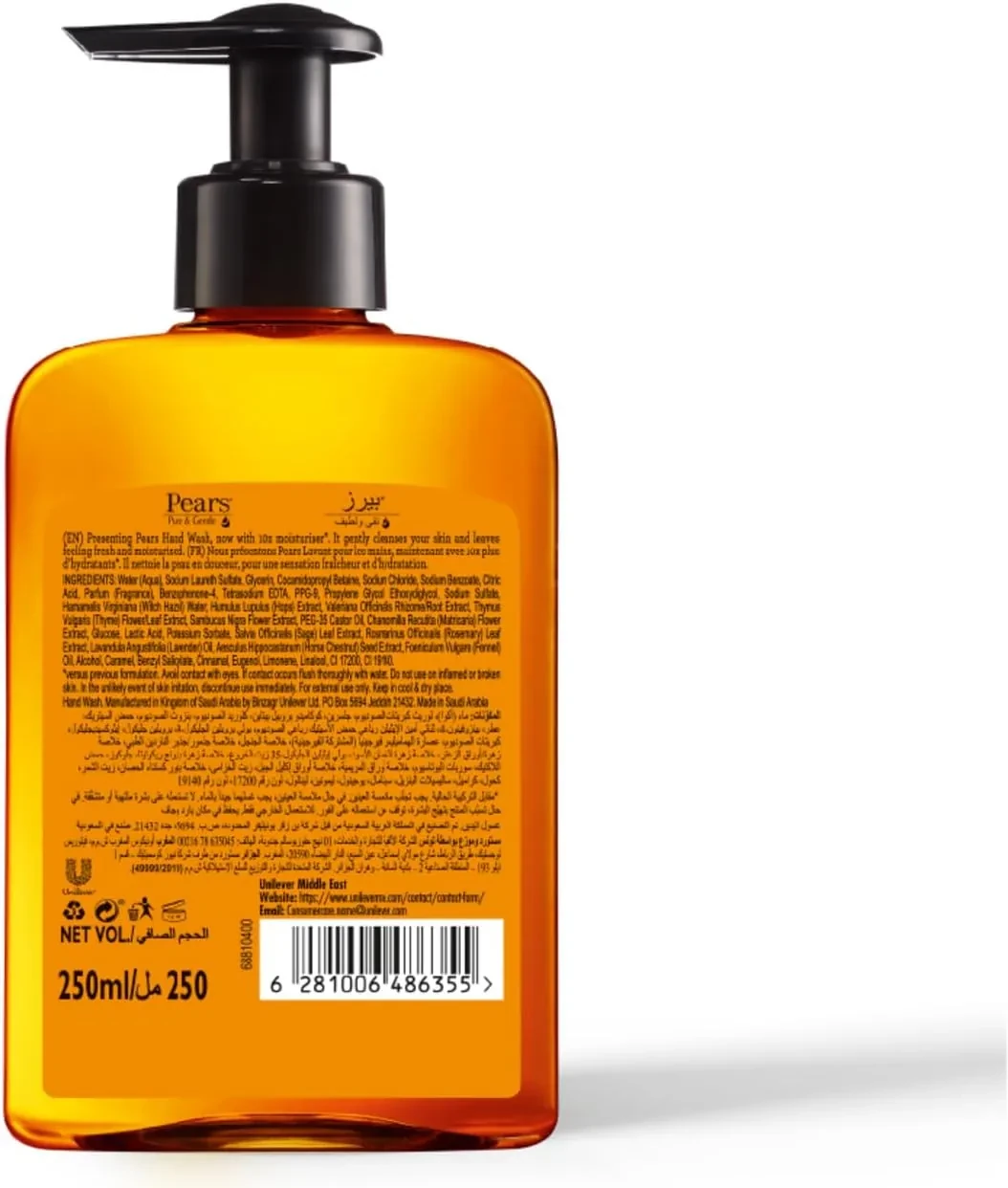 Pears Pure & Gentle Hand Wash, refreshing, mild formula, 250ml