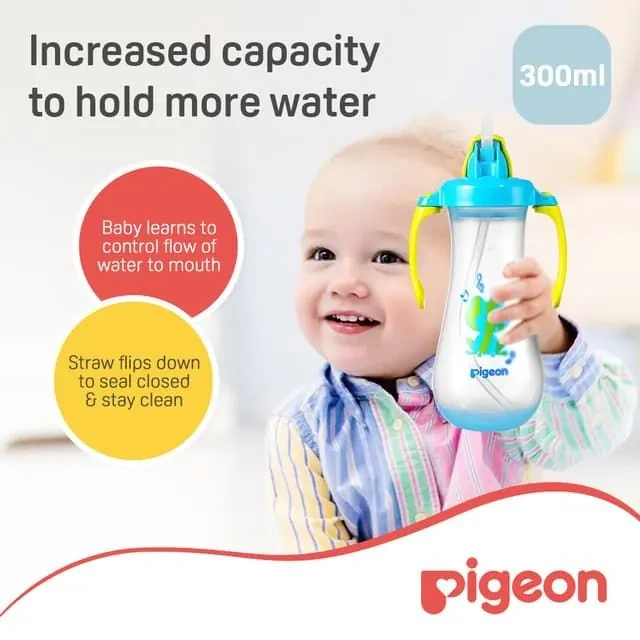 Pigeon Tall Straw Bottle (Blue), easy-to-hold, spill-proof, ergonomic, 300ml