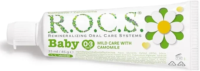 R.O.C.S Toothpaste Baby Mild Care With Camomile gives your baby’s teeth the care they need. A mild formula gently cleans tiny teeth while keeping gums comfortable. Thoughtfully made for early oral hygiene, it helps build a foundation for strong, healthy smiles.
