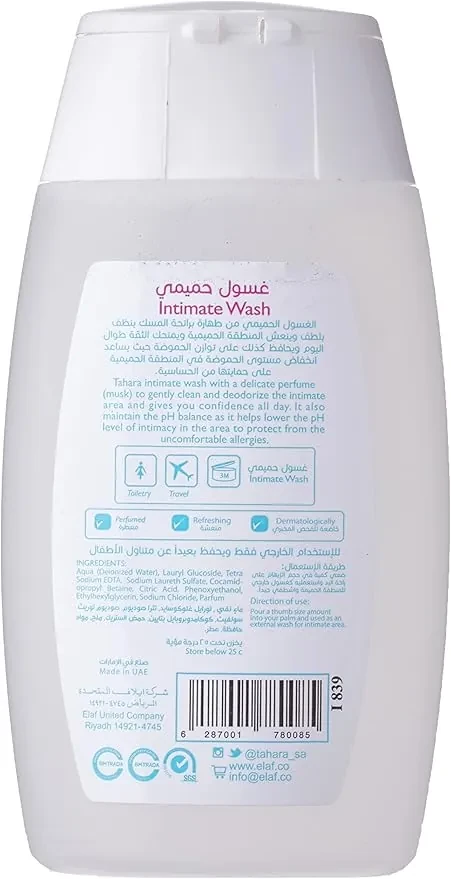 Let Tahara Intimate Wash gently refresh your intimate area with its clean, comforting touch. This wash is your daily go-to for feeling fresh and confident all day. It respects your natural pH while giving you a light, soothing cleanse. Start every day feeling secure in your own skin.