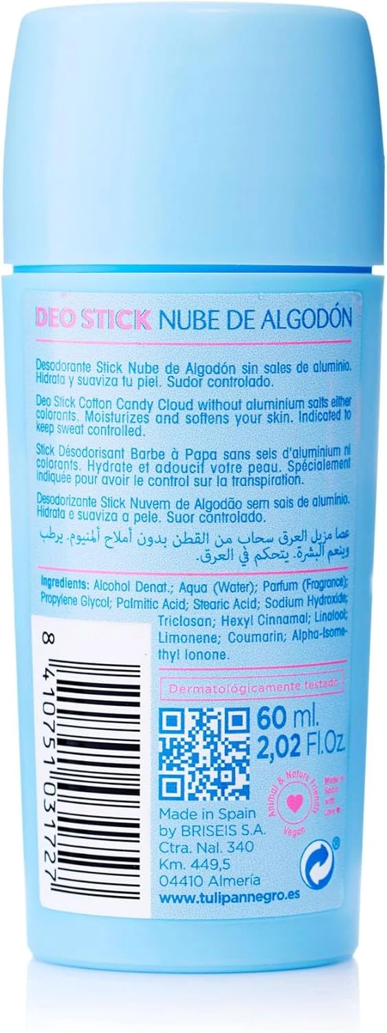 If you adore soft, comforting aromas, Tulipan Deodorant Stick Gourmand Nube De Algodón keeps you fresh with a delicate cotton candy scent. It provides protection against unwanted odors, ensuring all-day dryness and confidence. A gentle yet effective way to stay fresh and smell amazing.
