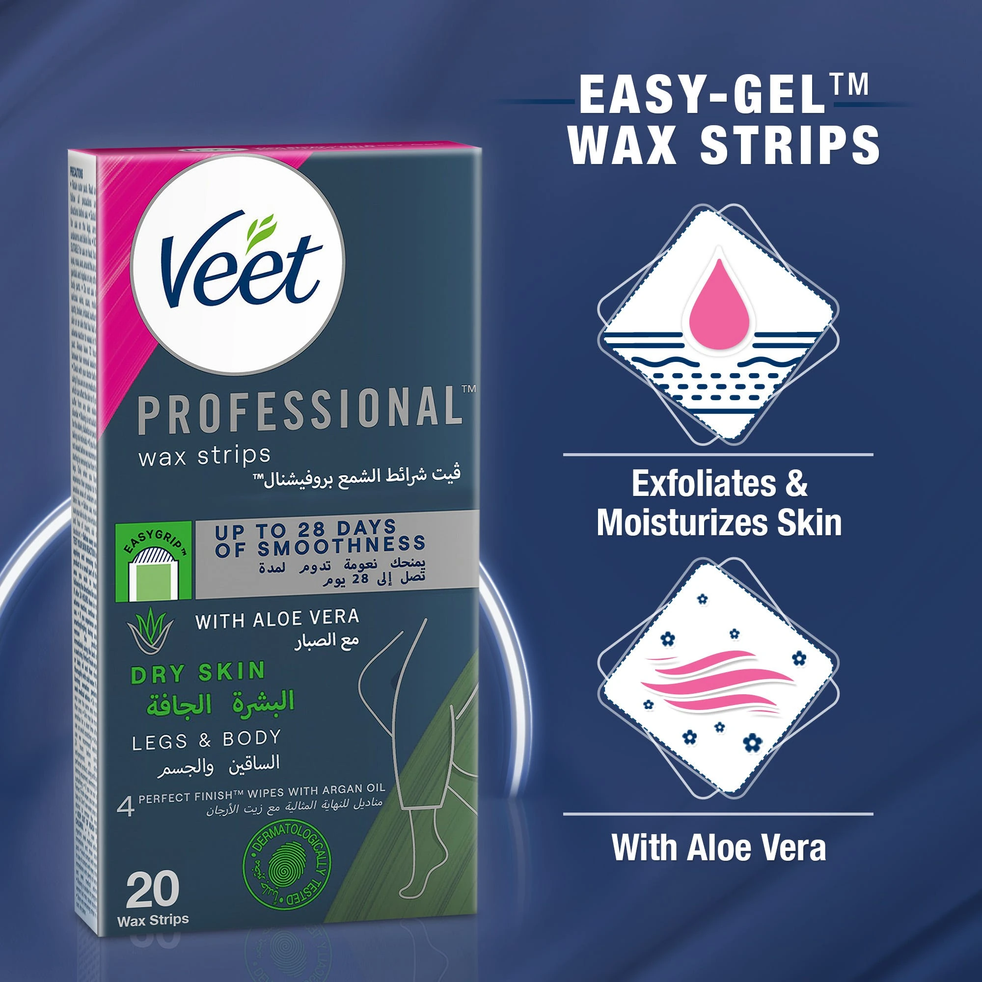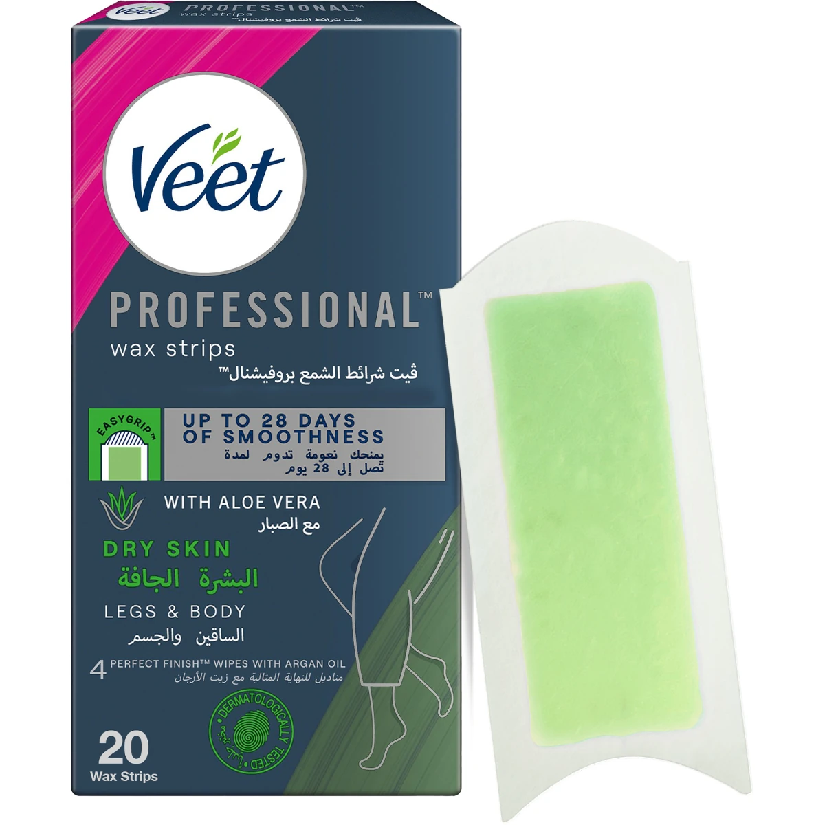 Veet Hair Removal Strips for Dry Skin, smooth, gentle, long-lasting, 20pcs