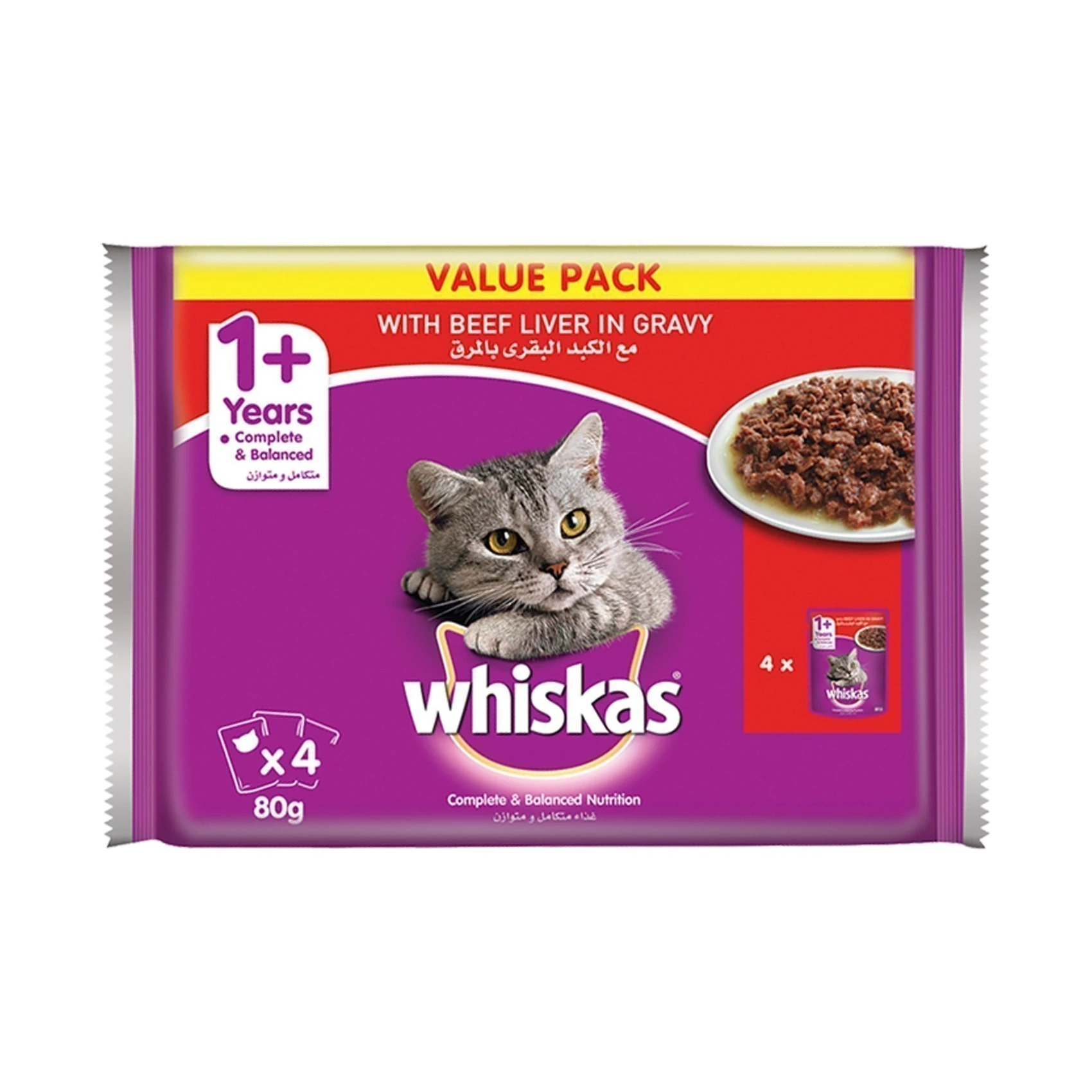 Whiskas Wet Cat Food (Beef Liver In Gravy) 4 X 80g (+1 Years)