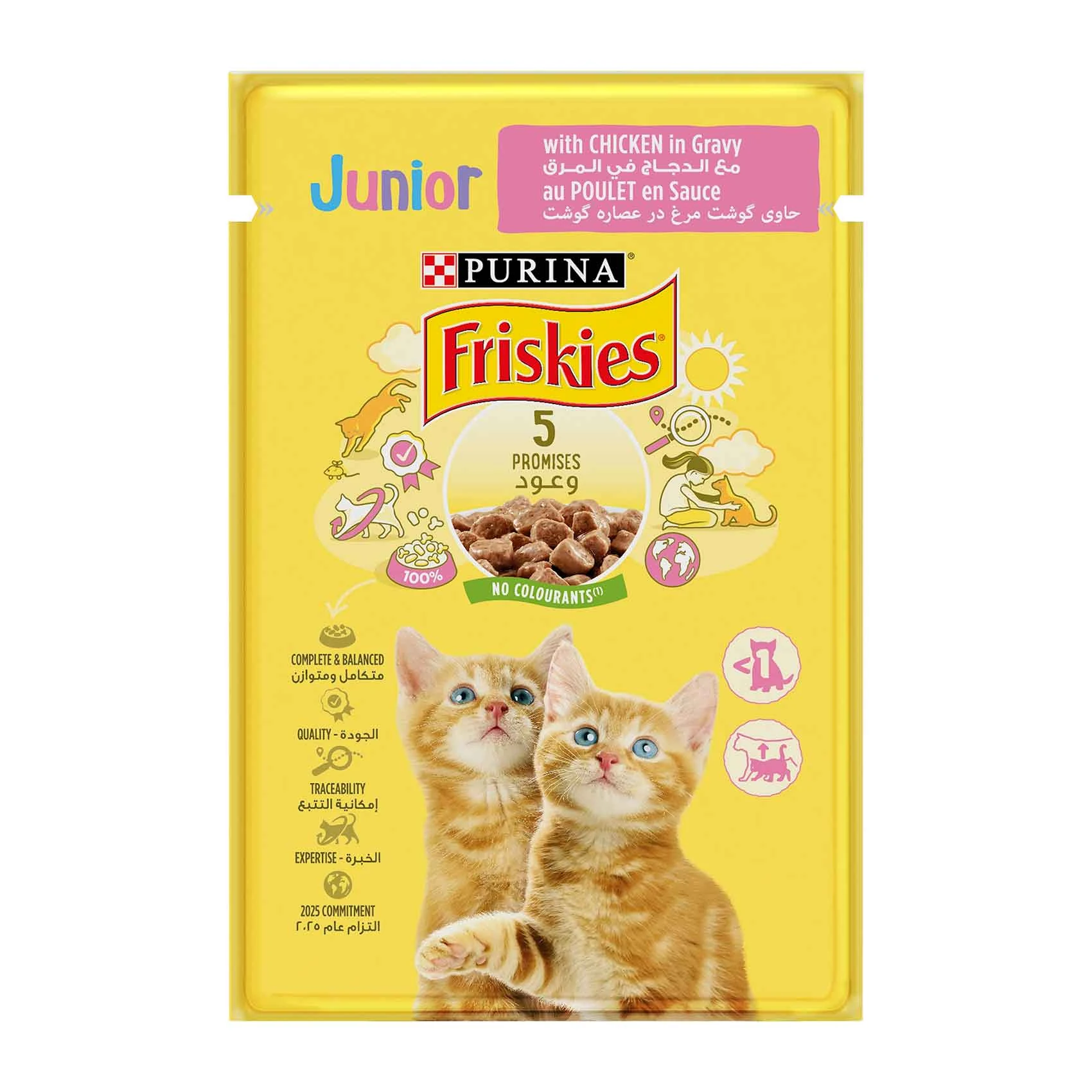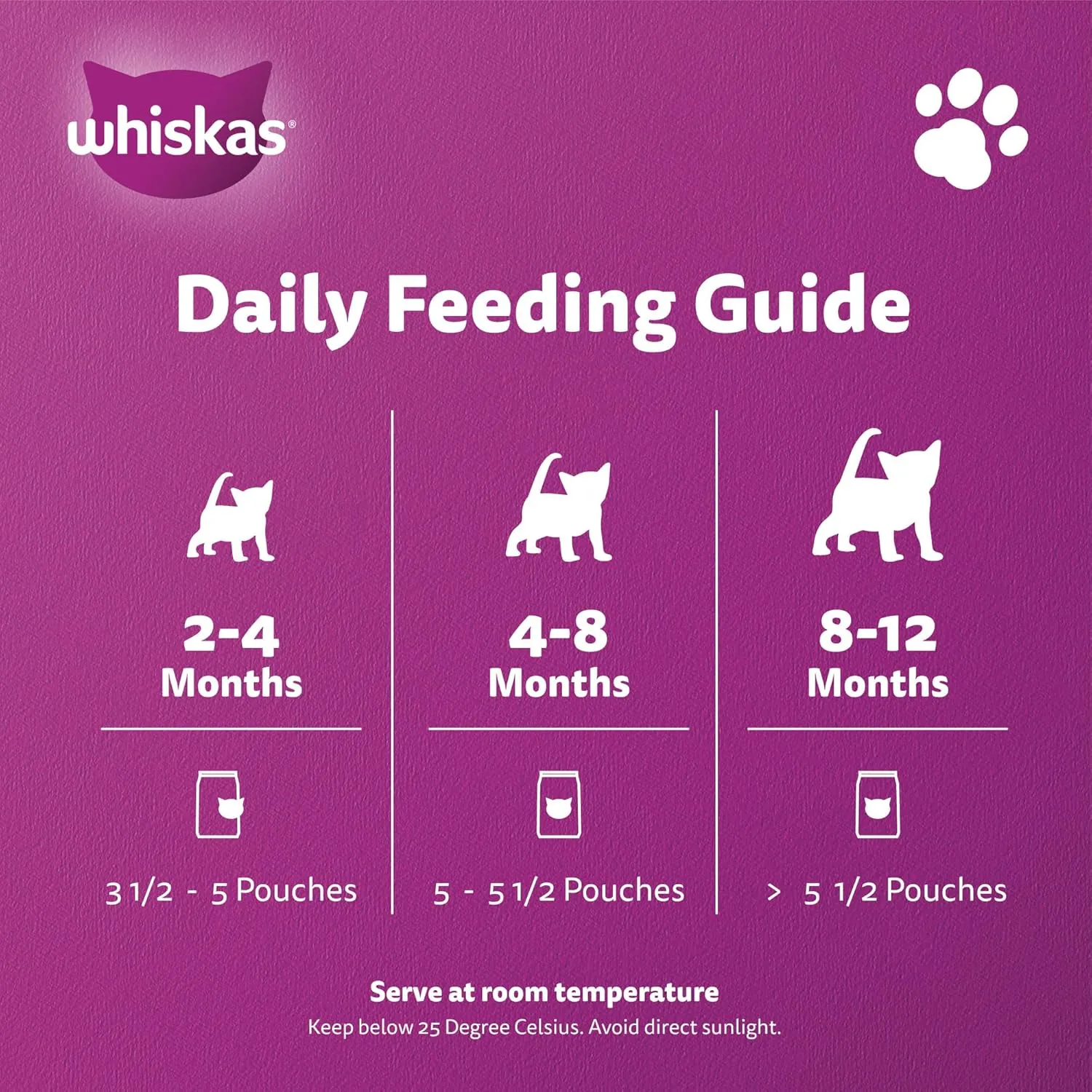 Wet kitten food with tuna flavor in 80g pouch, specially formulated with vitamins and minerals for growth.