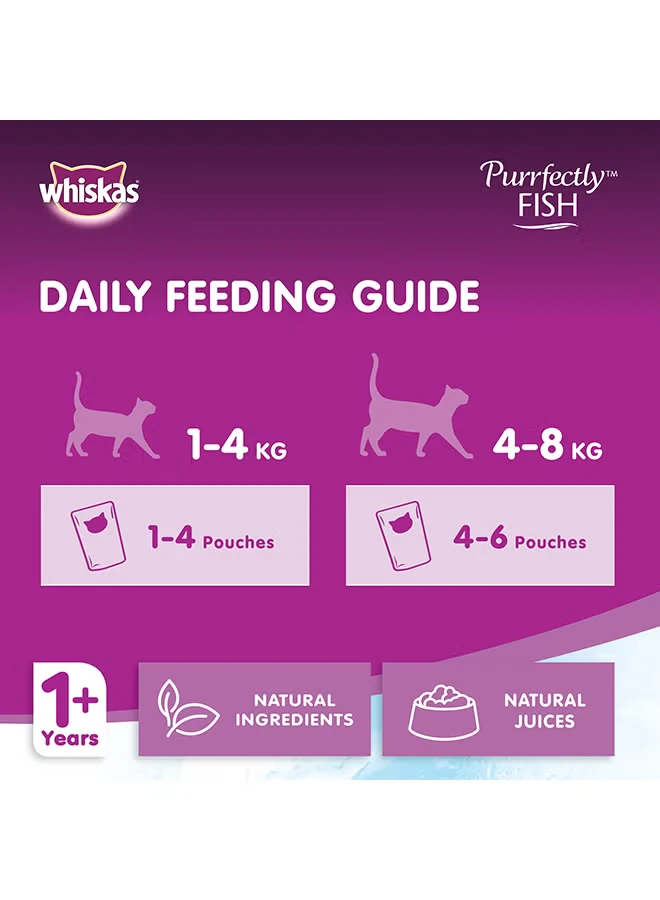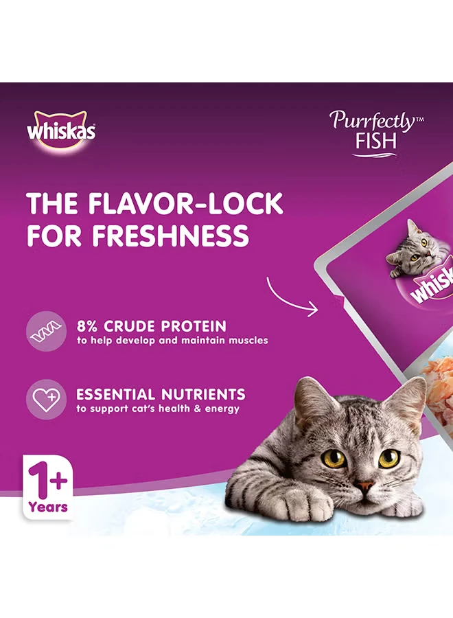 Whiskas Perfectly Wet Food for Cats, Tuna And Salmon, soft, savory, palatable, 85g