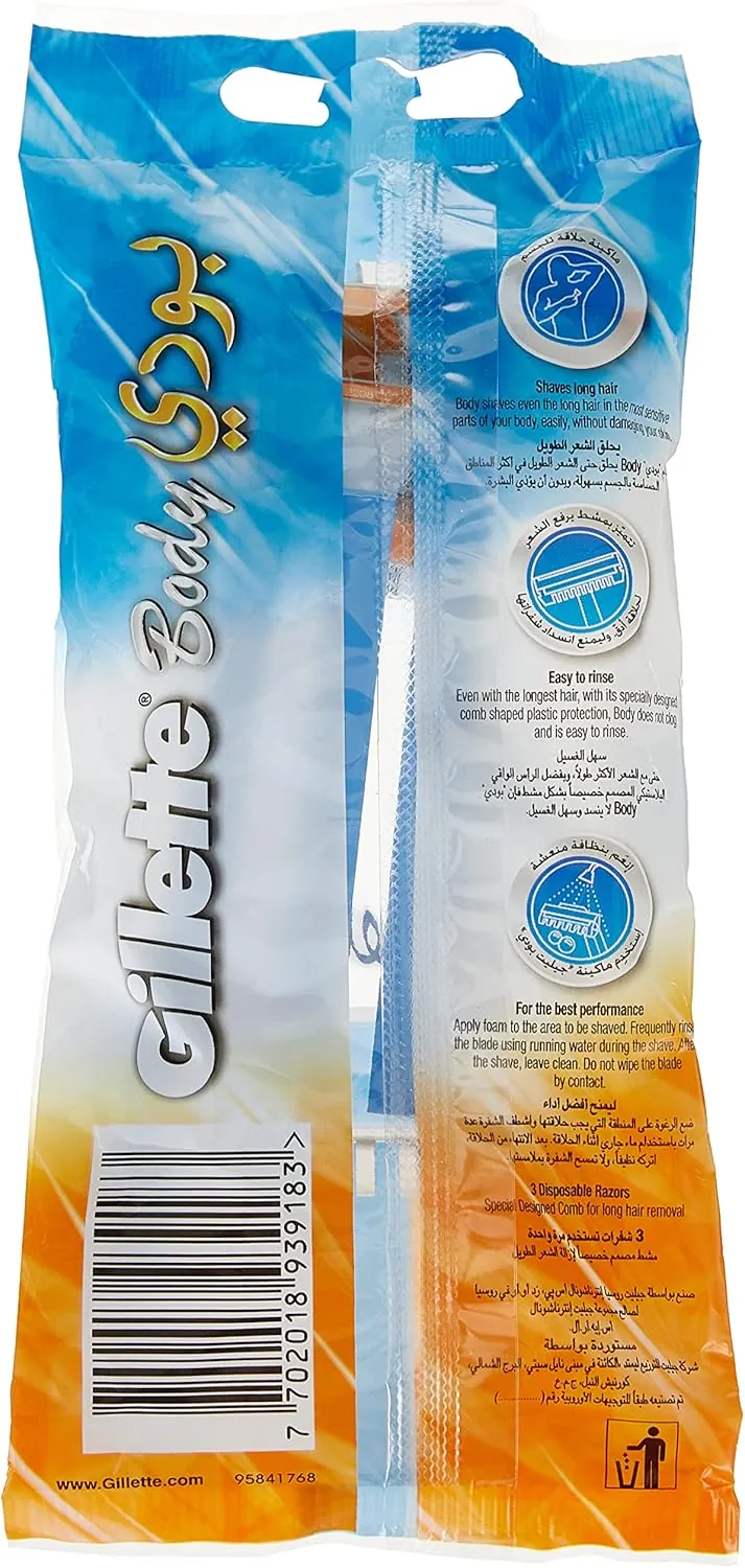 شفرات جيليت للجسم للاستعمال الواحد، انزلاق سلس، سهلة الاستخدام، 3 قطع